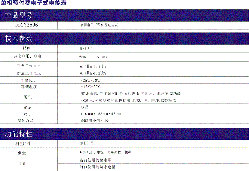 DDSY2596型單相電子式藍牙智能+4G遠程預付費電能表是一種軟件、硬件、結構設計技術先進,計量精度高,可進行正向交流有功電能計量的新型產品,具有高可靠性、高過載、低功耗等特點。