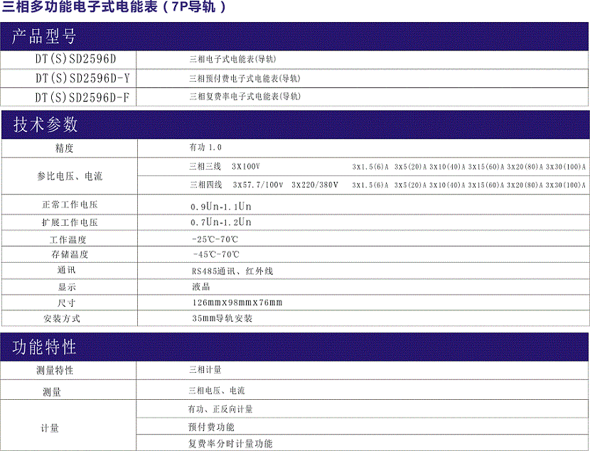 DTSD/DSSD2596D系列三相電子式多功能電能表(導(dǎo)軌)是百瑞順開發(fā)的計(jì)量額定頻率為50HZ或60HZ的三相交流有功電能,由8位(6+2)LCD顯示有功總電量,該表設(shè)有紅外和RS485通訊接口,通訊DL/T645或Modbus-RTU可選,具有可靠性好、體積小、重量輕、外表美觀、35mmDIN標(biāo)準(zhǔn)導(dǎo)軌式安裝等特點(diǎn),并具有良好的抗電磁性干擾、低自耗節(jié)電、高精度、高過載、高穩(wěn)定性等特點(diǎn)。能有效及時(shí)地滿足用戶對(duì)用電現(xiàn)代管理的需求,可應(yīng)用于電廠、變電站、中高壓系統(tǒng)商業(yè)、工業(yè)及各類企事業(yè)單位。