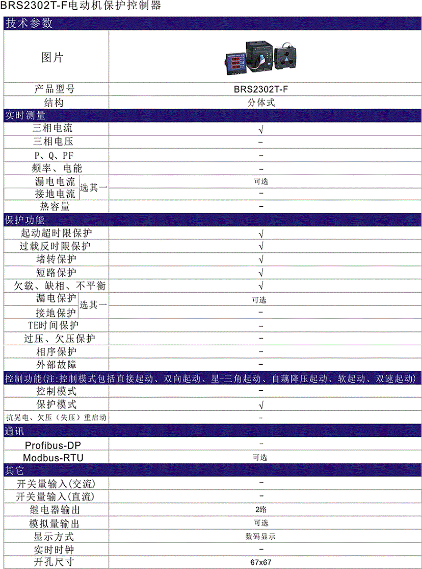BRS2302T智能電機(jī)保護(hù)控制器是我公司針對(duì)電動(dòng)機(jī)在各種應(yīng)用場(chǎng)合產(chǎn)生的故障而研發(fā)的電動(dòng)機(jī)保護(hù)裝置。適用于保護(hù)交流50Hz,額定工作電壓為380V的各種電機(jī)。對(duì)電動(dòng)機(jī)的短路、過載、堵轉(zhuǎn)、斷相/不平衡等故障引起的危害予以保護(hù)。