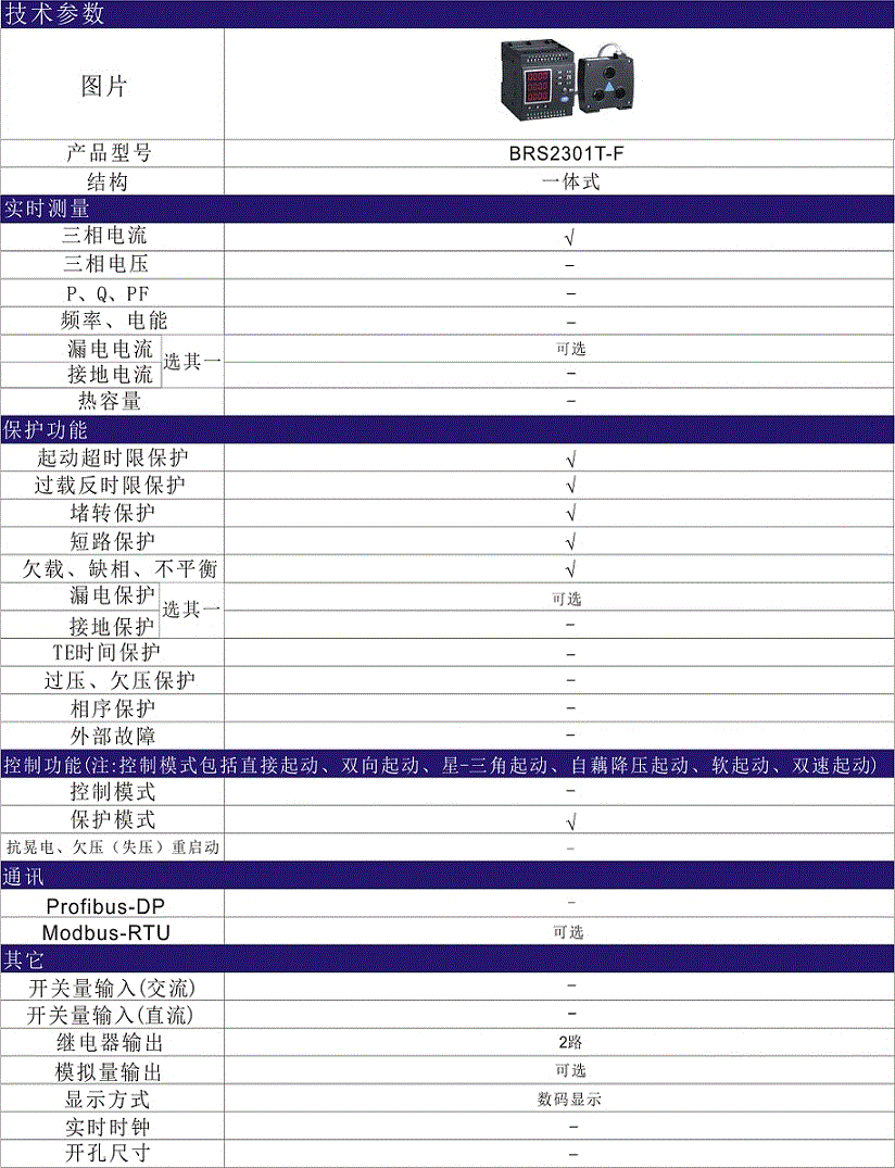 BRS2301T智能電機(jī)保護(hù)控制器是我公司針對電動機(jī)在各種應(yīng)用場合產(chǎn)生的故障而研發(fā)的電動機(jī)保護(hù)裝置。適用于保護(hù)交流50Hz,額定工作電壓為380V的各種電機(jī)。對電動機(jī)的短路、過載、堵轉(zhuǎn)、斷相/不平衡等故障引起的危害予以保護(hù)。