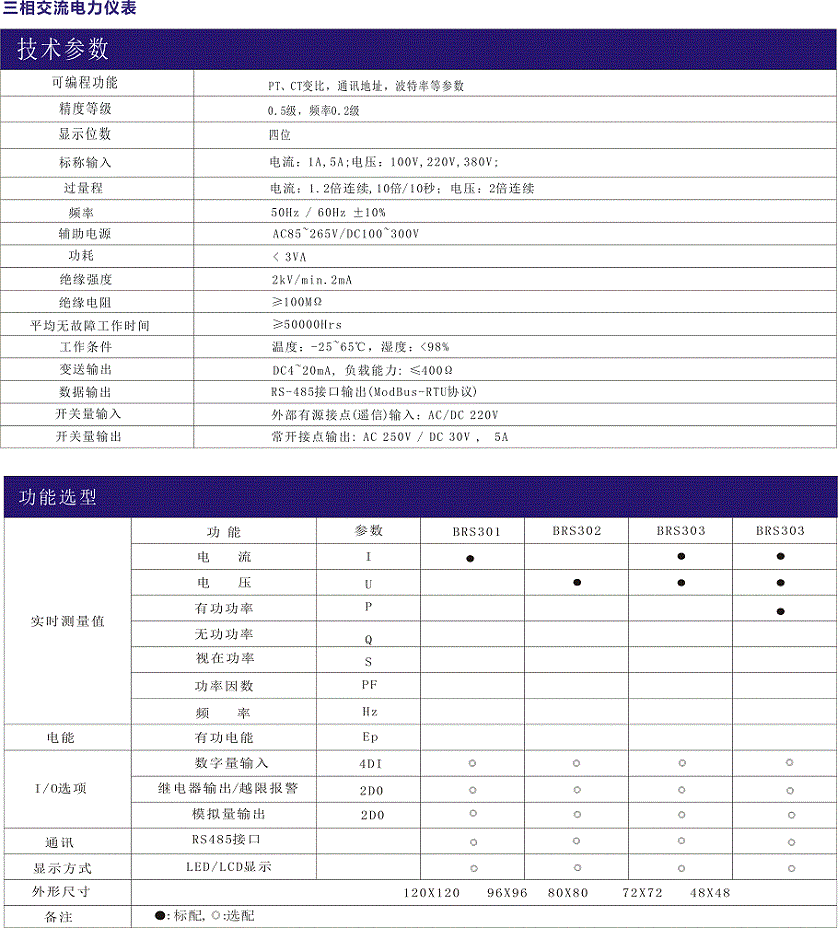 BRS300系列三相交流電力儀表具有交流電力參數(shù)測(cè)量、RS485串行輸出、模擬量輸出、接點(diǎn)輸出等功能。能實(shí)時(shí)顯示被測(cè)電量值、電能,可手動(dòng)或上位機(jī)設(shè)定地址、波特率、變比、模擬量輸出、繼電器輸出,具有性?xún)r(jià)比高、穩(wěn)定性好等特點(diǎn),是一款經(jīng)濟(jì)、實(shí)用的三相交流電力儀表參數(shù)測(cè)量?jī)x表。