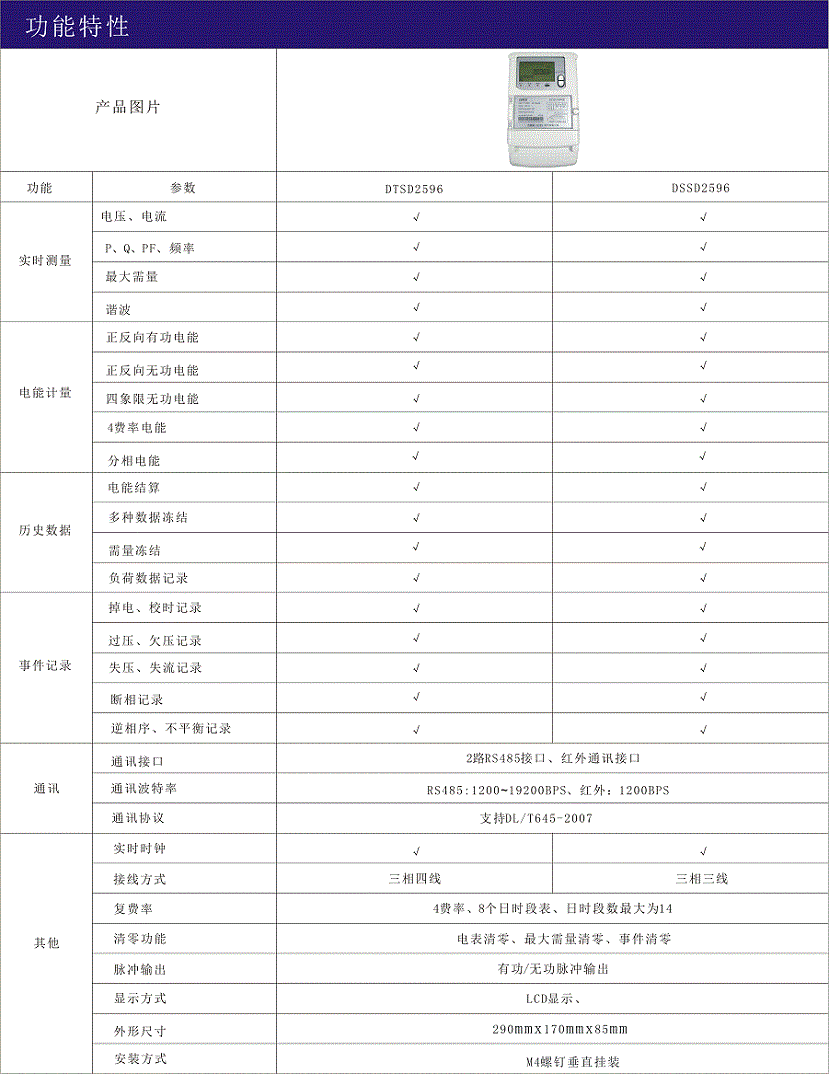●分時(shí)計(jì)量正、反向有功與無(wú)功電能以及四象限無(wú)功電能。